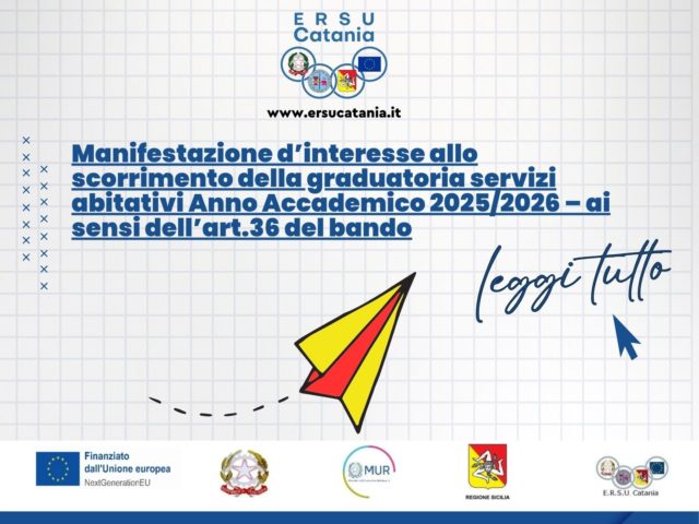 Manifestazione d’interesse allo scorrimento della graduatoria servizi abitativi Anno Accademico 2025/2026 – ai sensi dell’art.36 del bando
