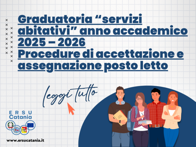 Graduatoria “servizi abitativi” anno accademico 2025 – 2026 – Procedure di accettazione e assegnazione posto letto