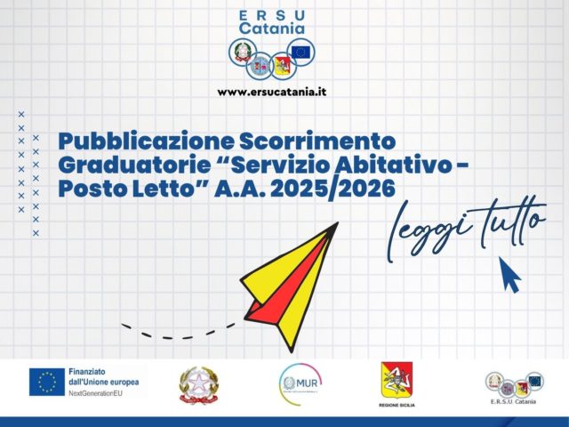 Pubblicazione Scorrimento Graduatorie “Servizio Abitativo-Posto Letto” A.A. 2025/2026