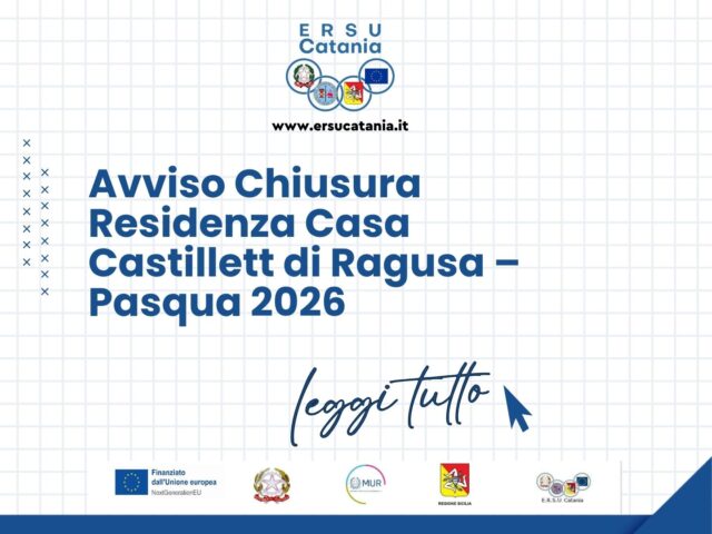 Si comunica che in occasione delle festività della Santa Pasqua 2026, la residenza Casa Castillett di Ragusa, rimarrà chiusa nei giorni 4-5 e 06 aprile …