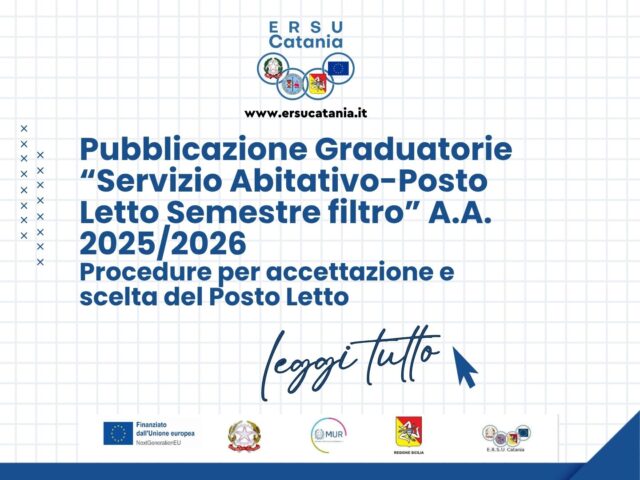 Pubblicazione Scorrimento Graduatorie “Servizio Abitativo-Posto Letto” A.A. 2025/2026 Residenza Universitaria di Ragusa